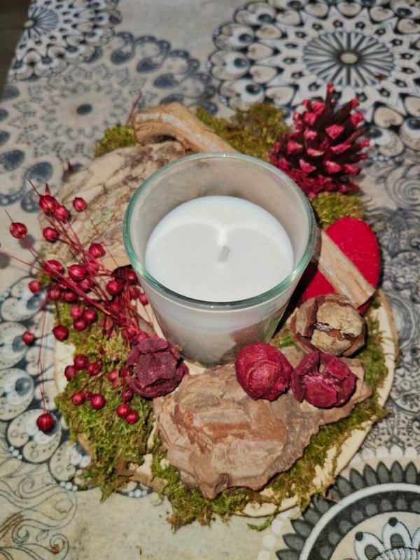 Una vela de soja con aceite de anís ilumina y perfuma el espacio con un aroma cálido, ideal para las noches frescas de otoño.